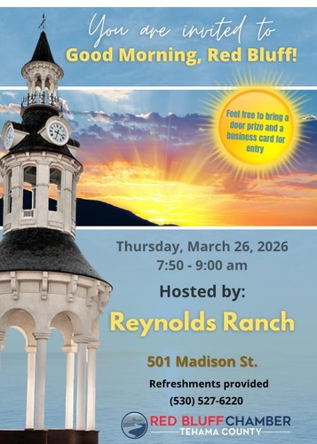 Calling all Red Bluff, Tehama County, NorCal Businesses. Join us for the most amazing networking event, Good Morning, Red Bluff, hosted by the Reynolds Ranch!